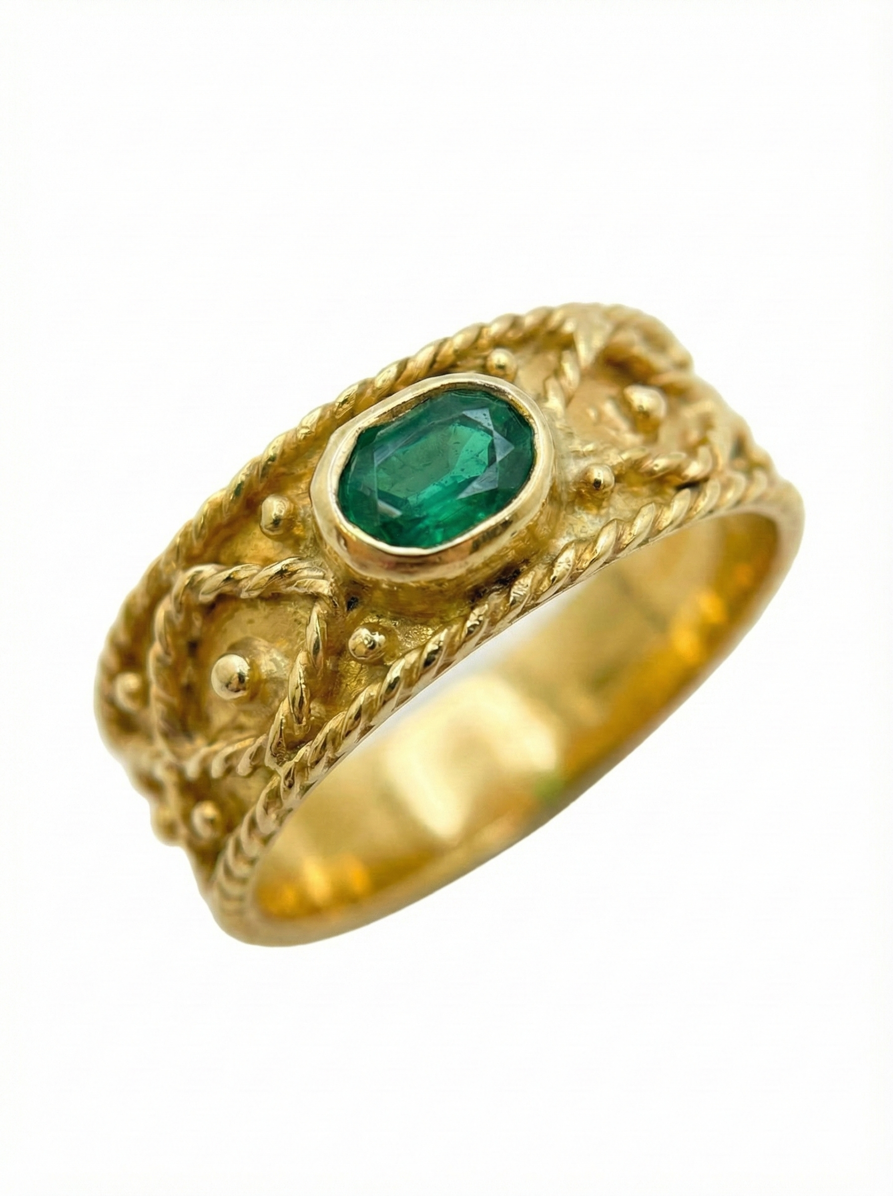 Splendido anello a fascia realizzato in oro giallo 18kt , caratterizzato da una raffinata lavorazione artigianale a granulazione.