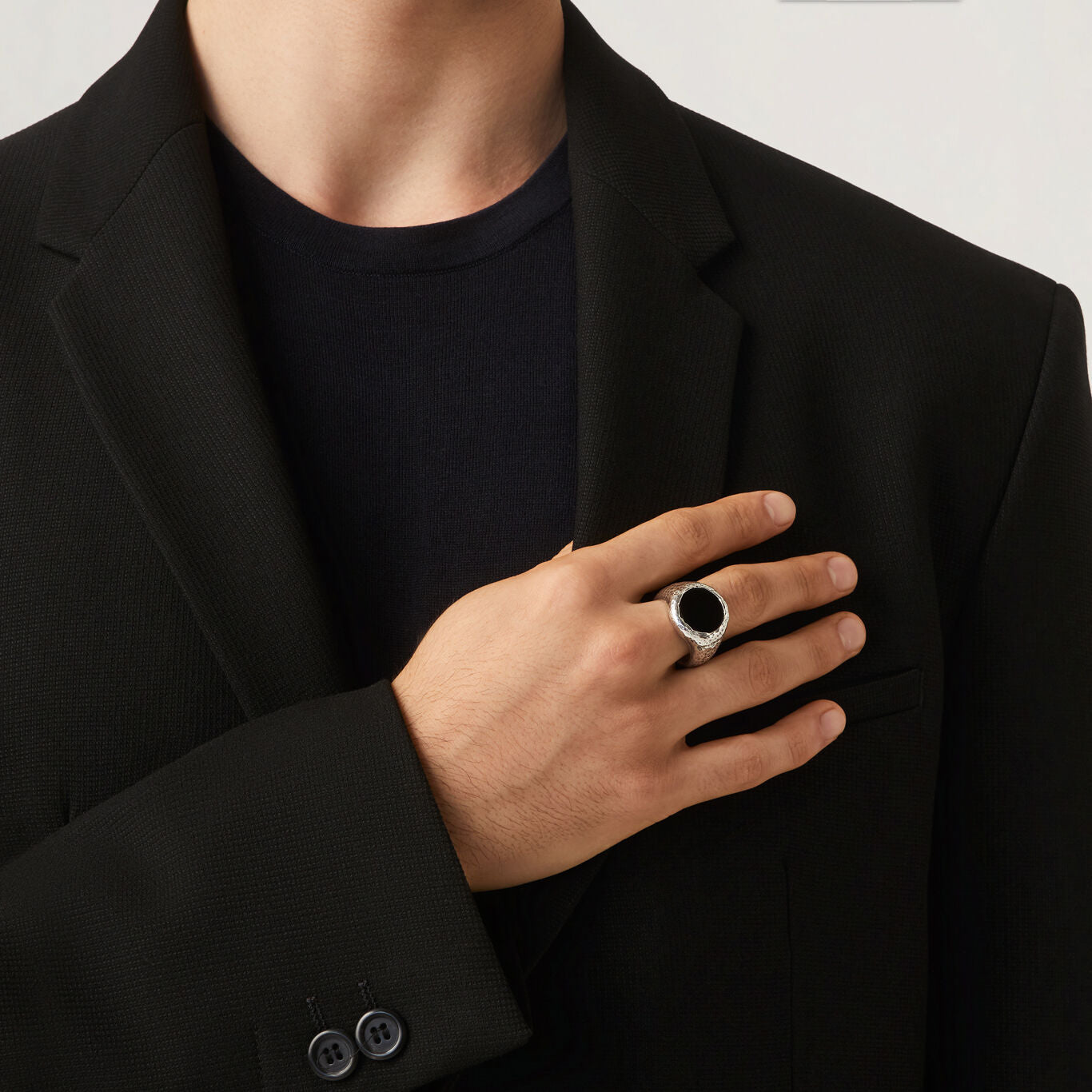 ANELLO MARTELLATO TONDO ONICE GRANDE - GIOVANNI RASPINI