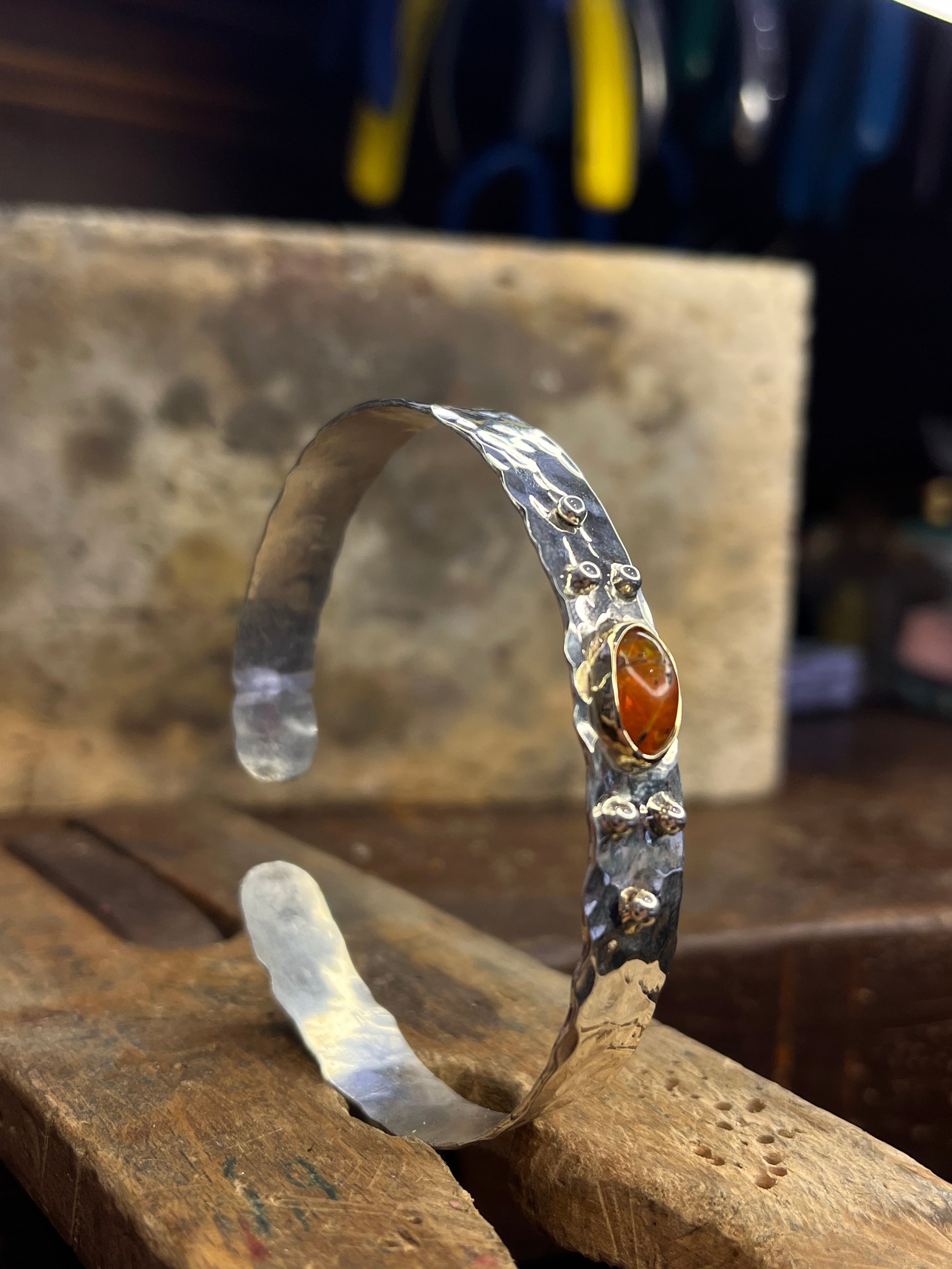 Questo bracciale nasce dal colpo deciso del martello e dal tempo lento della lavorazione a mano.
