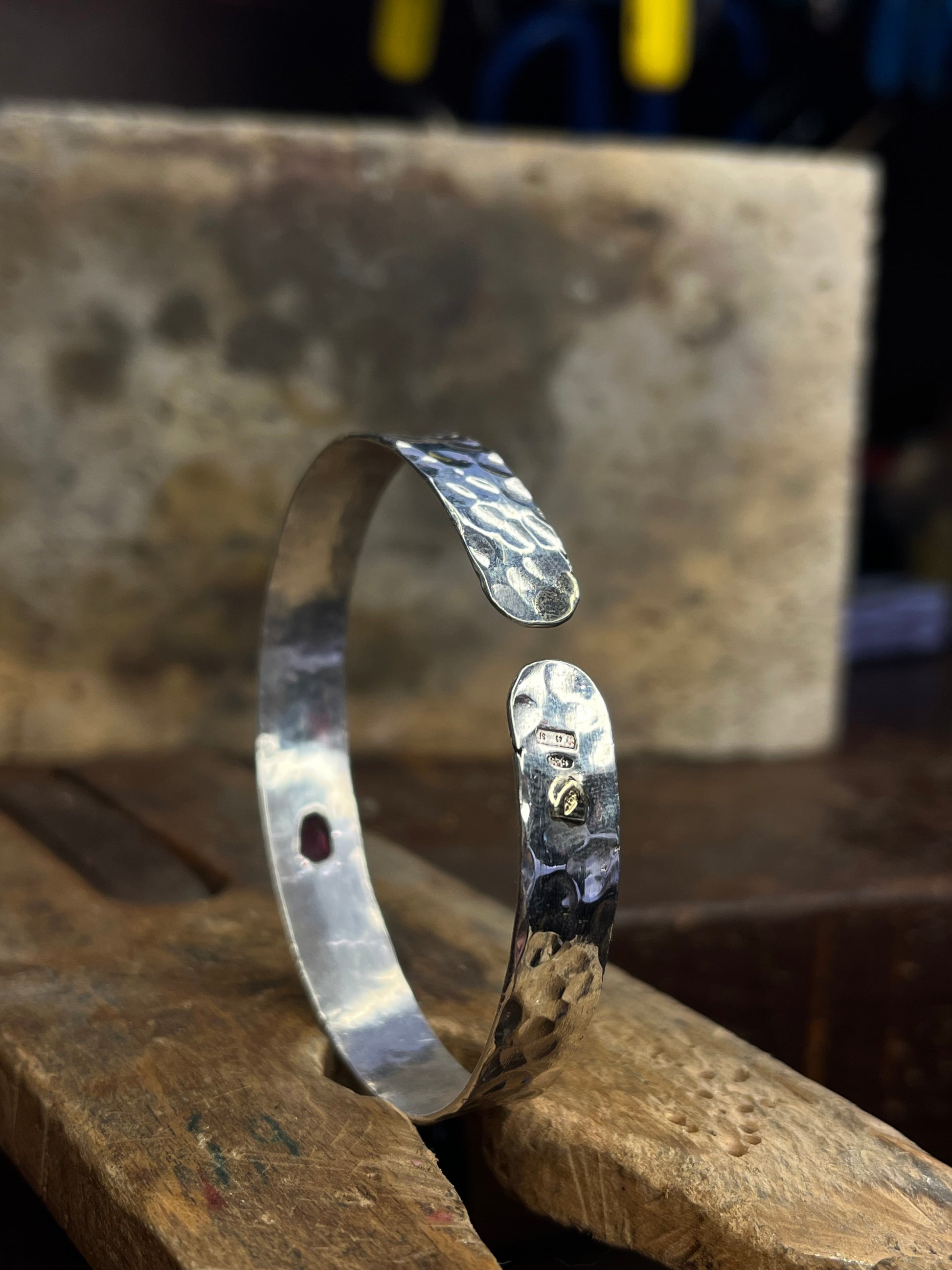 Questo bracciale nasce dal colpo deciso del martello e dal tempo lento della lavorazione a mano.