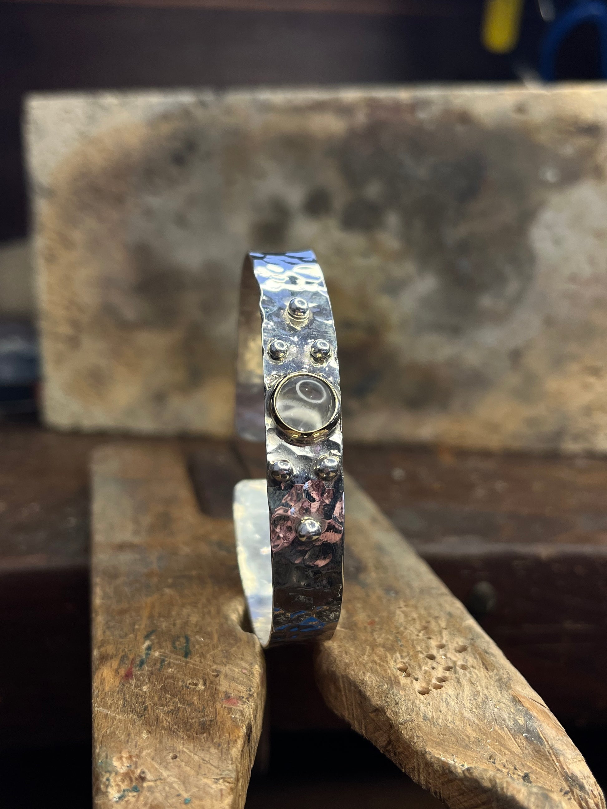 Bracciale martellato con Quarzo incolore